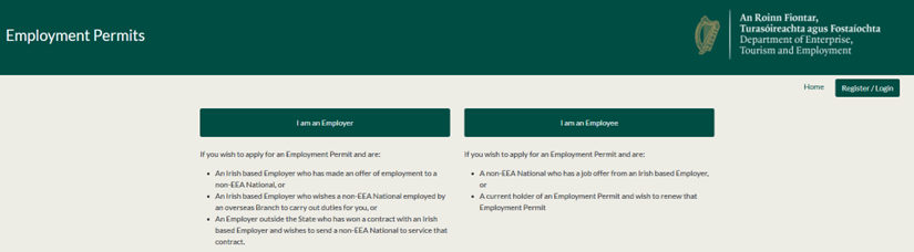 EPOS is the official online system used by the Department of Enterprise, Trade and Employment (DETE) to manage work permit applications in Ireland. All employers and employees must register and create their profiles here before applying.